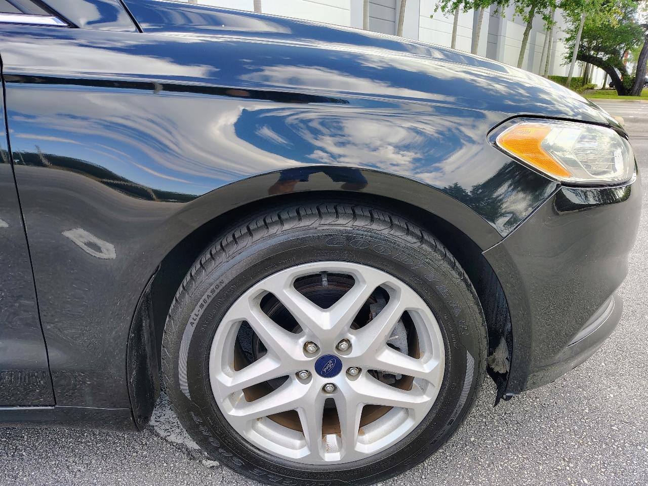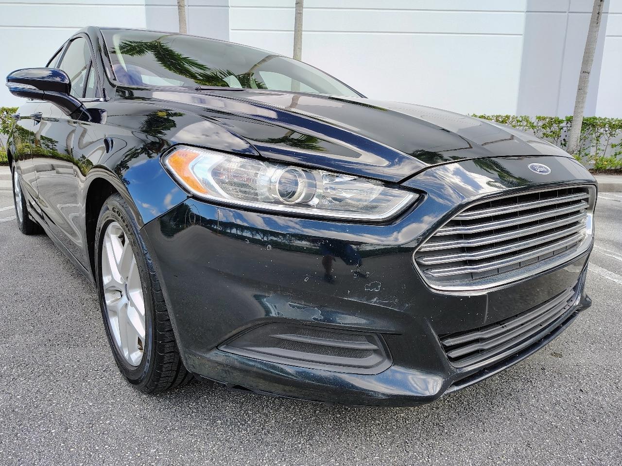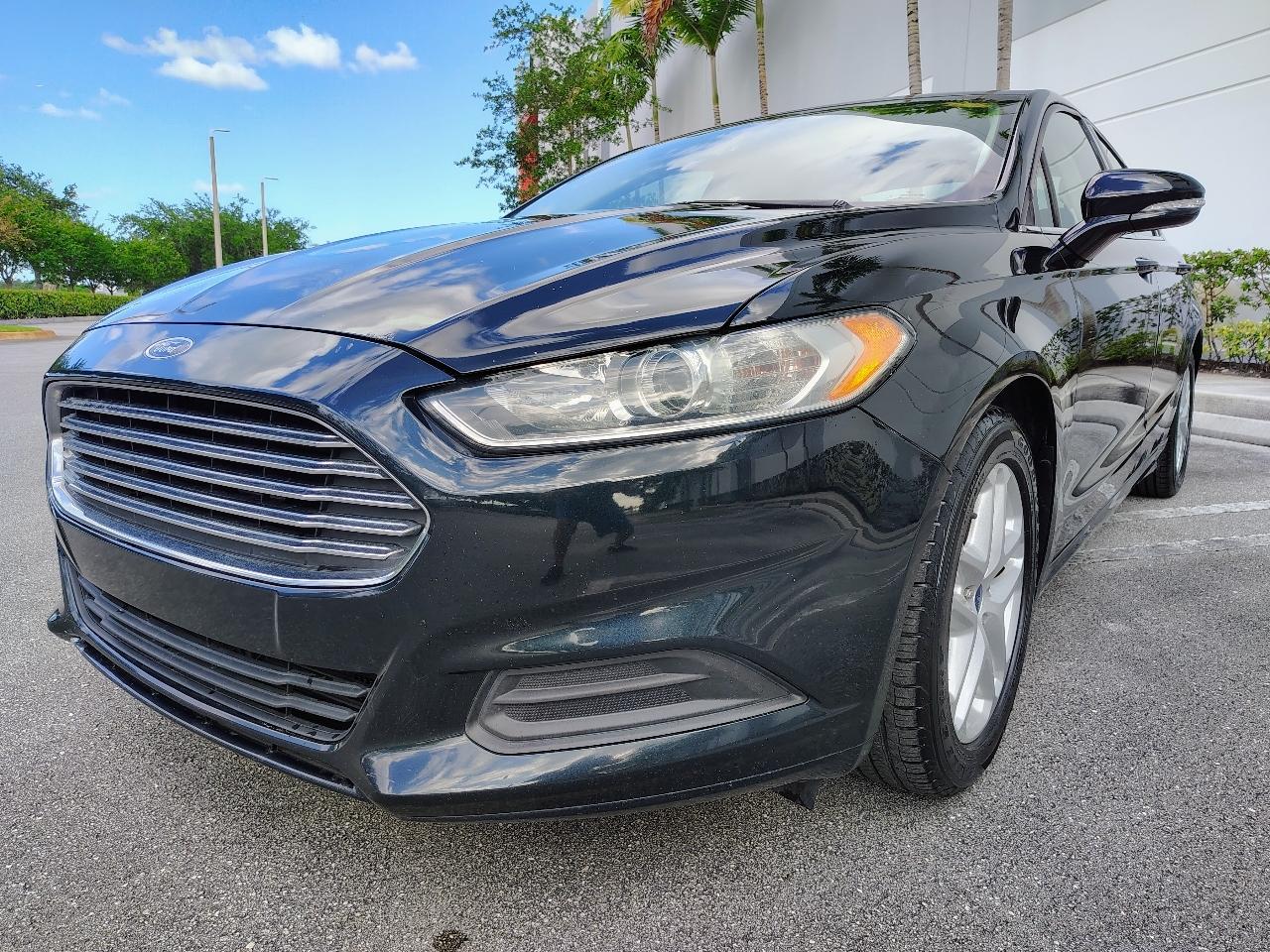 This Dark Green 2014 Ford Fusion is a sleek and stylish ride that is sure to turn heads wherever you go. With a reliable 2.5L iVCT engine and front-wheel drive, this car is not only fun to drive but also fuel-efficient. It features a comfortable interior with ample seating space and convenient amenities like cruise control, HVAC, and a driver information center. The exterior is adorned with body-colored details and chrome accents, giving it a modern and polished look. The included carfax report ensures you know the history of this vehicle, providing peace of mind for your purchase. Whether you're cruising around town or hitting the open road, this Ford Fusion delivers a smooth and enjoyable driving experience. So buckle up, hit the road, and enjoy the ride in this reliable and stylish sedan.