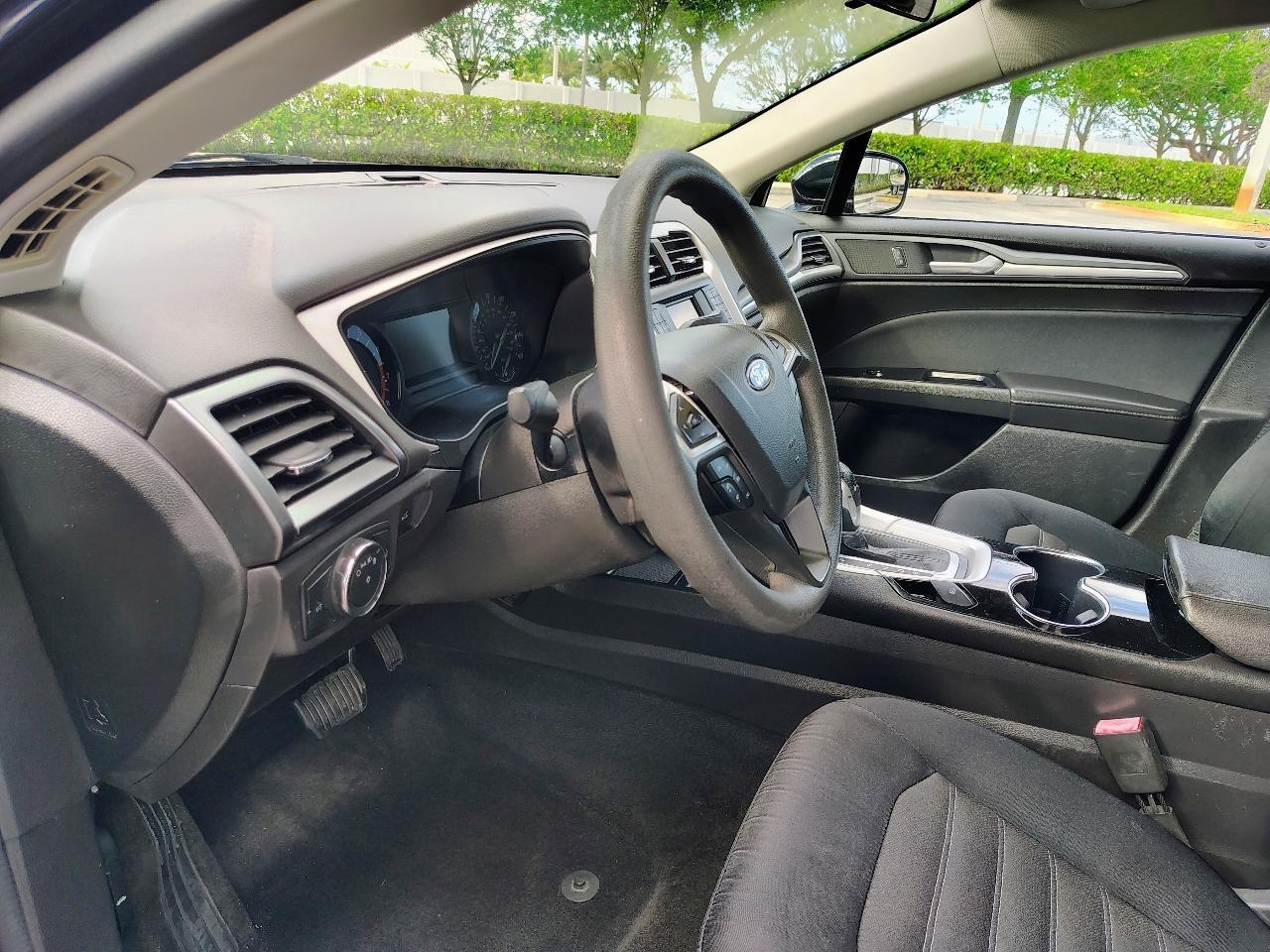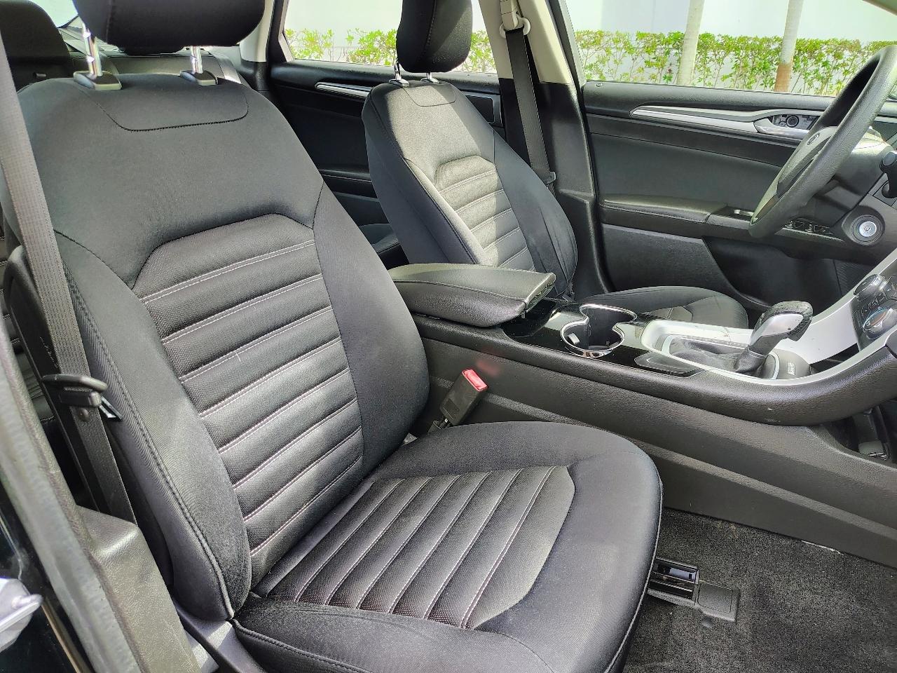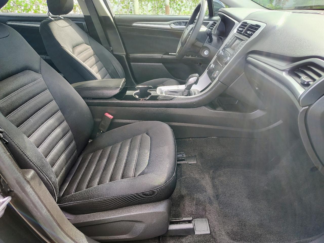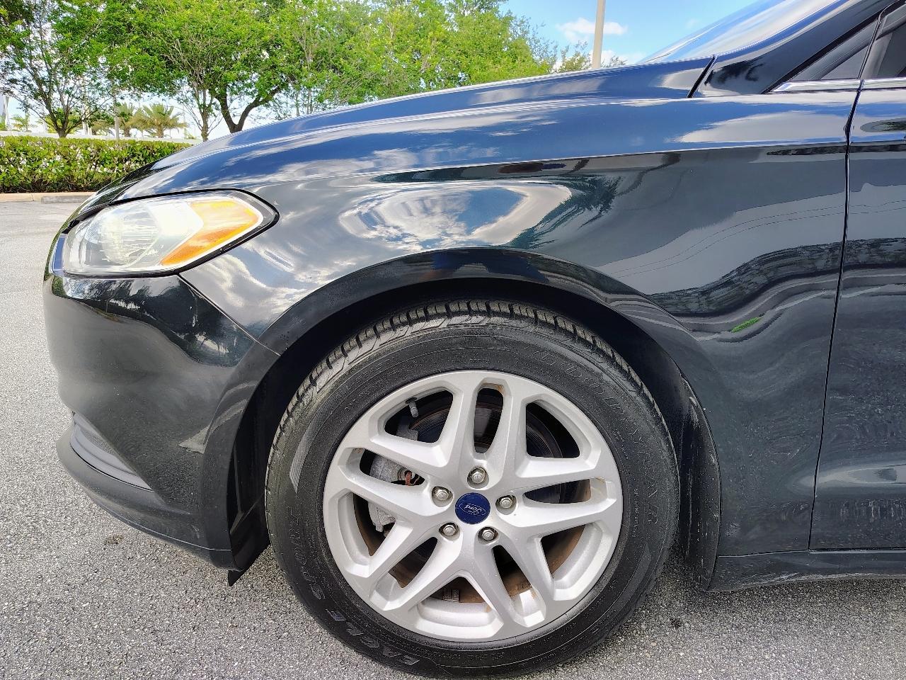 This Dark Green 2014 Ford Fusion is a sleek and stylish ride that is sure to turn heads wherever you go. With a reliable 2.5L iVCT engine and front-wheel drive, this car is not only fun to drive but also fuel-efficient. It features a comfortable interior with ample seating space and convenient amenities like cruise control, HVAC, and a driver information center. The exterior is adorned with body-colored details and chrome accents, giving it a modern and polished look. The included carfax report ensures you know the history of this vehicle, providing peace of mind for your purchase. Whether you're cruising around town or hitting the open road, this Ford Fusion delivers a smooth and enjoyable driving experience. So buckle up, hit the road, and enjoy the ride in this reliable and stylish sedan.